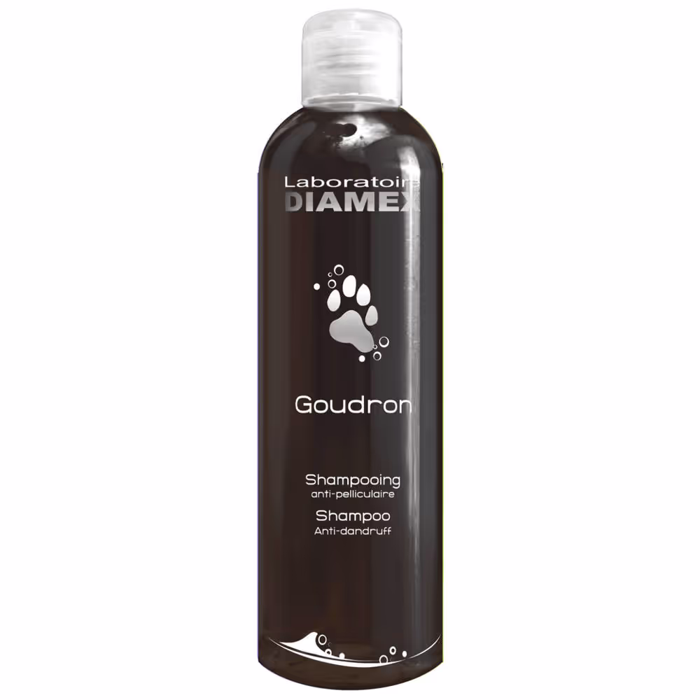 Diamex Goudron to szampon dla psów przeznaczony do walki z łupieżem. Dzięki zawartości dziegciu może być również używany jako ochrona przeciw insektom. Działa antyseptycznie i przeciwzapalnie, normalizuje pracę gruczołów łojowych, łagodzi swędzenie, suchość i łuszczenie skóry spowodowane łupieżem, egzemą czy łuszczycą. Dodatek kwasu salicylowego wspomaga proces usuwania martwego naskórka. Zawarte w szamponie proteiny pszenicy wbudowują się w strukturę włosów, uzupełniając ubytki i tworząc kondycjonujący film na ich powierzchni, chroniąc je przed uszkodzeniem i zniszczeniem. Nadają objętości, blasku i zdrowego wyglądu. Dodatkowo pomagają utrzymać właściwy poziom nawilżenia skóry i sierści. Szampon posiada łagodne, nie powodujące podrażnień substancje myjące pochodzenia roślinnego. Nie zawiera silikonów, parabenów czy fenoksyetanolu.